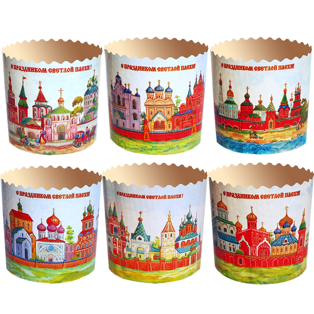 Размеры: диаметр - 110 мм., высота - 85 мм. Описание: Представляют собой одноразовые формы из специальной бумаги с рисунком для выпечки и последующего хранения куличей.