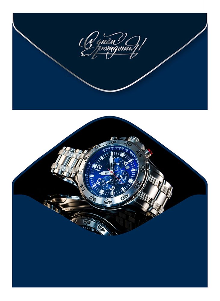 Конверт для денег "С Днем рождения!" софт-тач т.синий сапфир