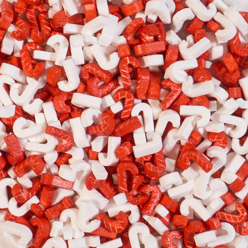 Состав: сахар, кукурузный крахмал, пшеничная мука, мальтодекстрин, эмульгаторы, загуститель гуммиарабик Е-414 шеллак Е-904, ванилин, пищевые красители.