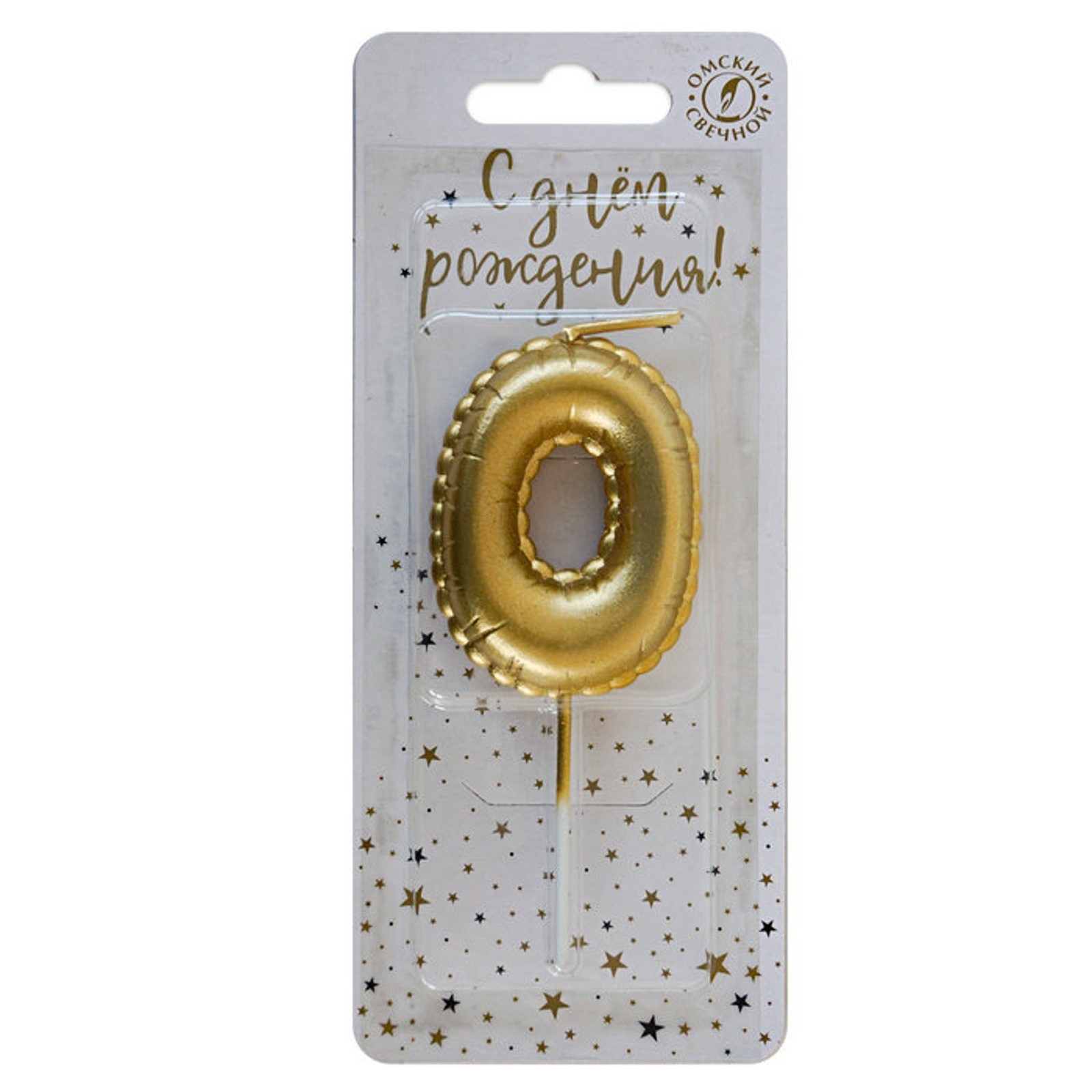 Свеча для торта "Воздушная цифра" №0 золото (5,2 см)