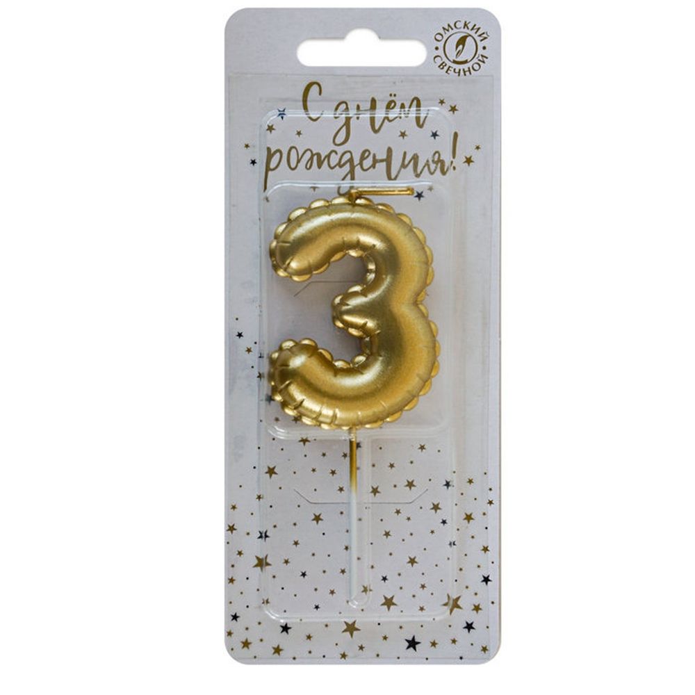 Свеча для торта "Воздушная цифра" №3 золото (5,2 см)