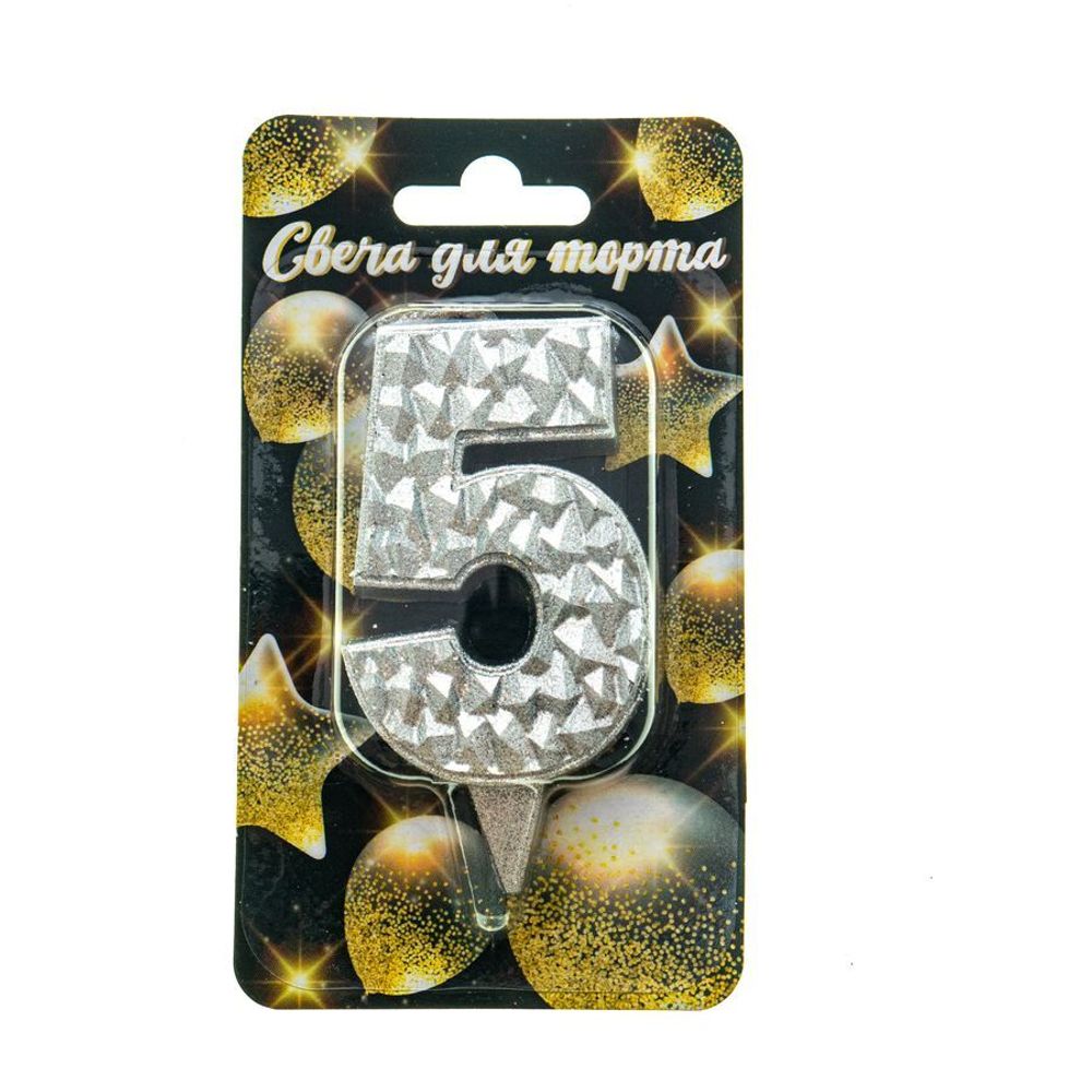 Свеча цифра "Айсберг серебряная с блеском" №5