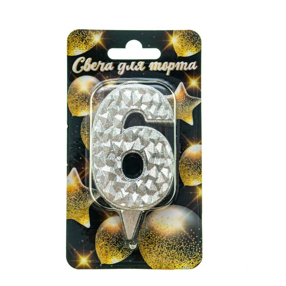 Свеча цифра "Айсберг серебряная с блеском" №6