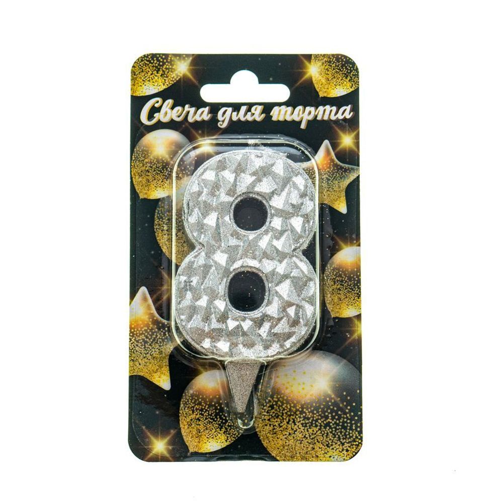 Свеча цифра "Айсберг серебряная с блеском" №8