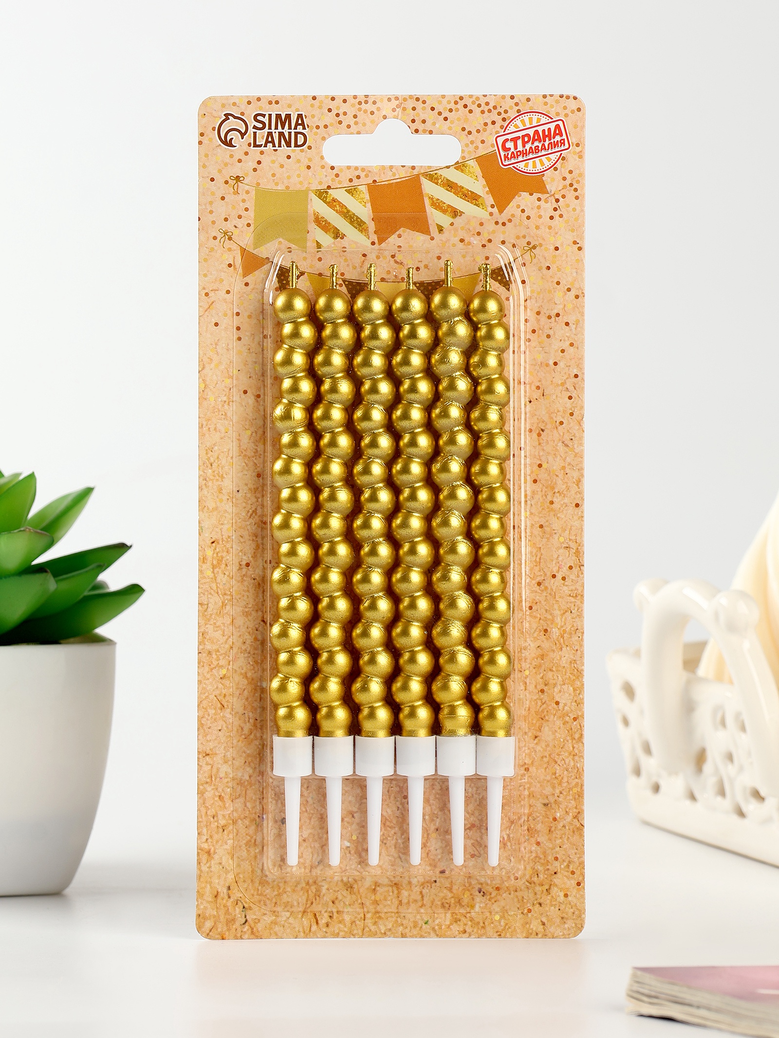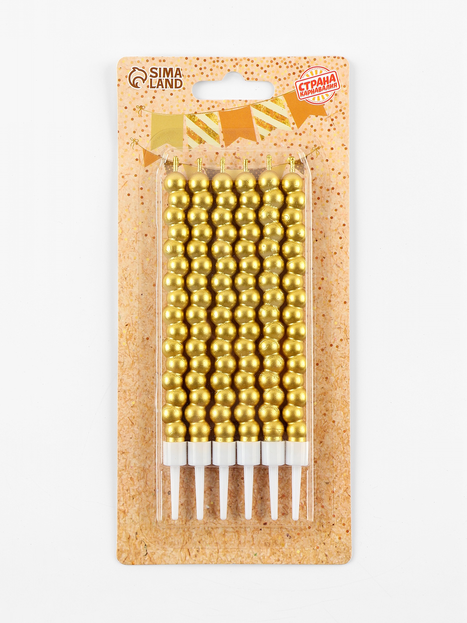 Свечи для торта "Жемчужины" золото с держателями (6 шт/уп.)
