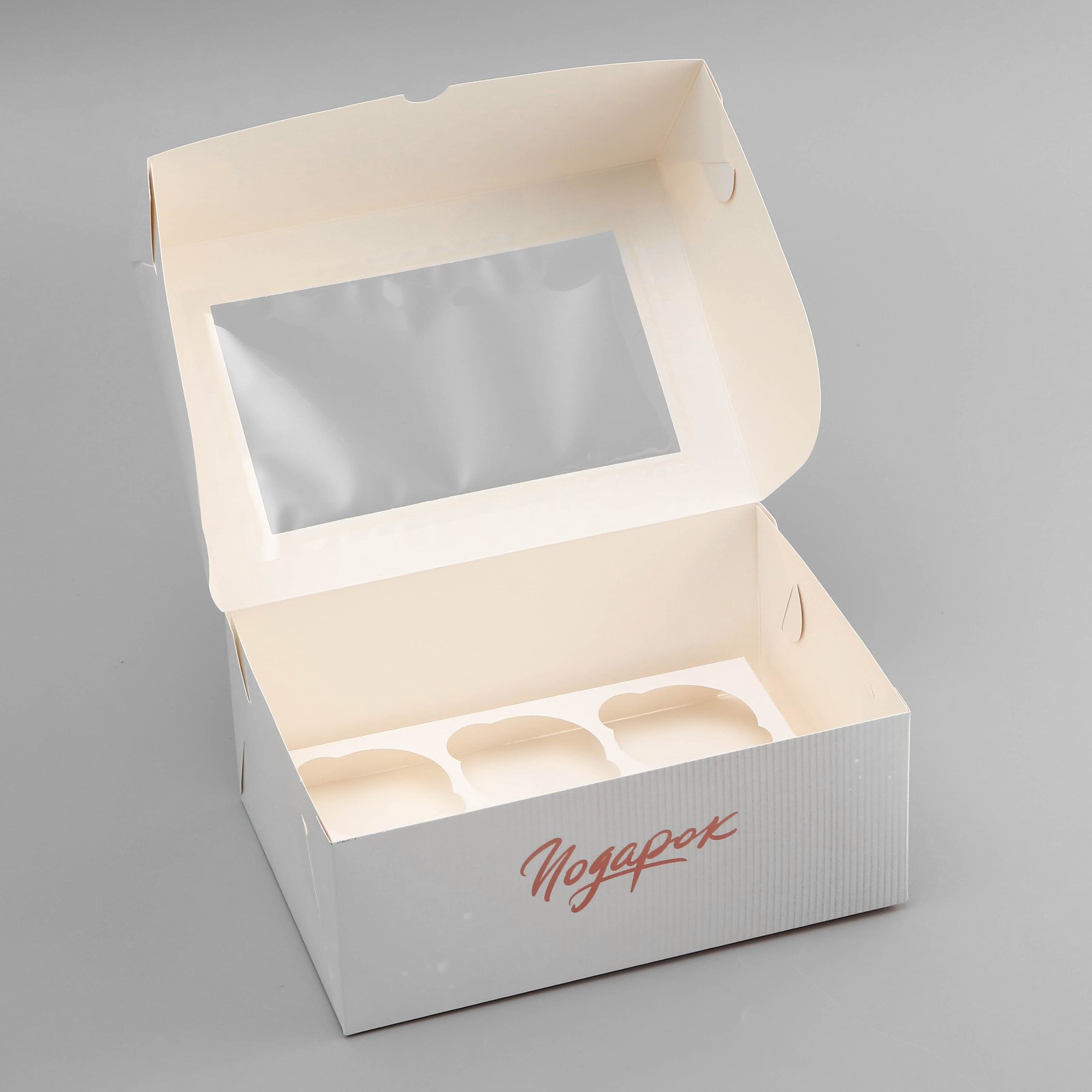 Окно изготовлено из прозрачной ПЭТ пленки, через которую можно увидеть изделие, которое находится внутри коробки.